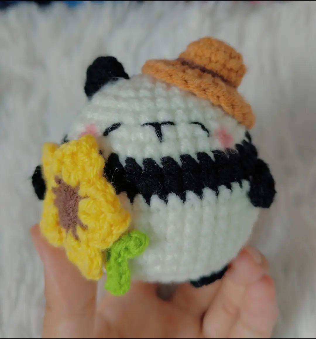 Hướng dẫn móc len hình gấu trúc đội mũ cầm hoa hướng dương