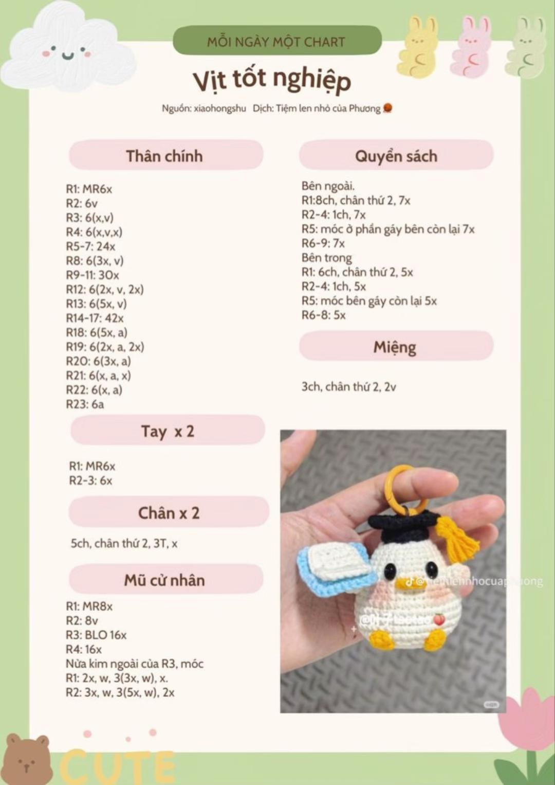 Hướng dẫn móc len hình vịt tốt nghiệp đáng yêu với mũ cử nhân