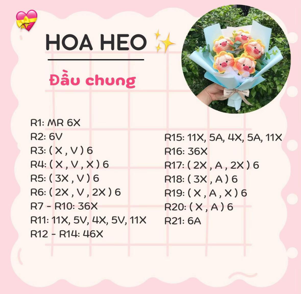 Hướng dẫn móc len hoa heo xinh xắn cho người mới bắt đầu