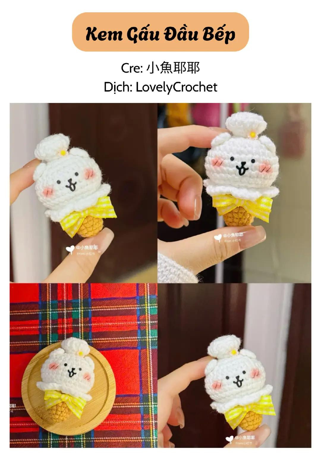 Một scoop ngọt ngào, thêm chút đáng yêu… Kem Gấu Đầu Bếp đã sẵn sàng làm tan chảy trái tim bạn 🍦🐻💛 #gấu #lovelycrochet #chartfree #viral #xuhuong