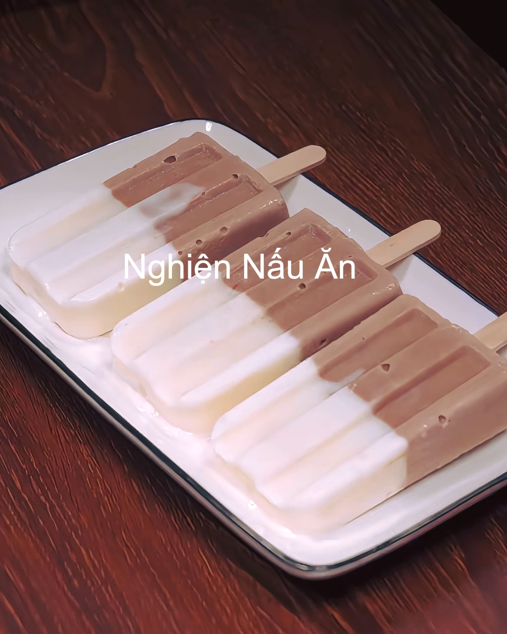 LƯU NGAY CÁCH LÀM KEM SỮA SOCOLA ĐƠN GIẢN MÀ NGON . Chuẩn bị nguyên liệu : - 250ml sữa tươi - 25g đường - 40g bột sữa nguyên kem - 10g tinh bột bắp - 1 nắm socola chip ( màu đen ) Cách Làm : 1 . Cho sữa tươi , đường , bột sữa và bột bắp vào nồi . 2 . Khuấy đều và nấu ở l.ửa nhỏ đến khi sôi lăn tăn thì tắt bếp . 3 . Đổ ra 2 bát , cho socola chip vào 1 bát rồi khuấy đều cho socola tan hoàn toàn . 4 . Đổ bát sữa nguyên chất vào khuôn làm kem ( chỉ đổ 1/2 khuôn ) rồi cho vào ngăn đá trong 30 phút . 5 . Sau đó cho bát socola còn lại vào khuôn để vào ngăn đá trong 5 tiếng rồi lấy ra dùng . Chúc cả nhà thành công với công thức này nhé.