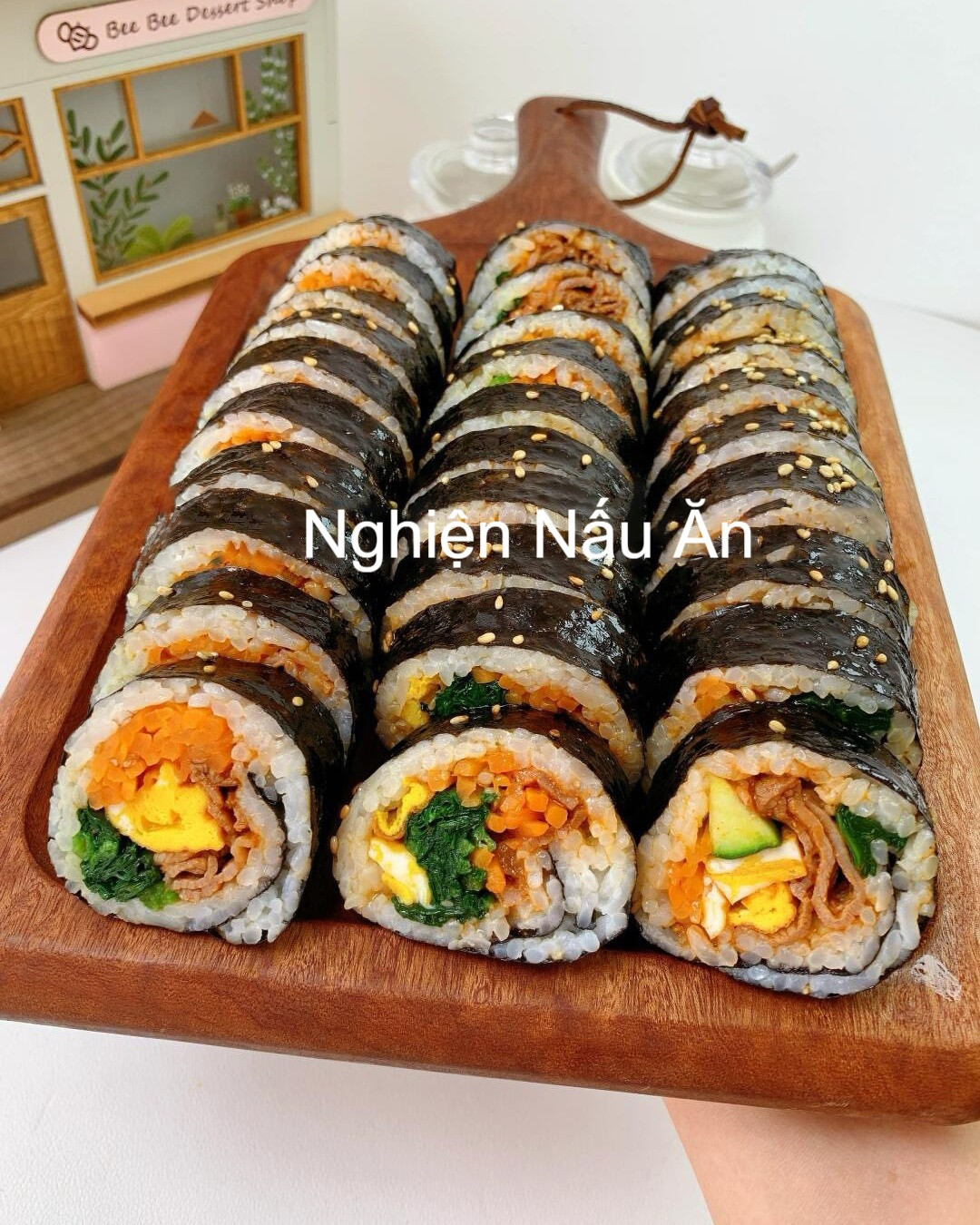 LUU NGAY CÁCH LÀM KIMBAP BÒ CAY NGON CHUẨN HÀN. Nguyên liệu: - 200g thịt bò ba chỉ - 2 bát cơm nóng - 1 quả trứng gà - 1/2 củ cà rốt - 1 quả dưa chuột - Lá rong biển khô, rau bina, mè rang - 1 thìa tương ớt Hàn, 1 thìa nước tương, 1 thìa dầu hào, 1 thìa mật ong Cách làm: - Xào thịt bò với chút dầu. Thêm tương ớt hàn, nước tương, dầu hào và mật ong cho ngấm đều. - Cơm trộn mè rang, dầu mè và chút muối. - Trứng gà rán mỏng, c.ắt sợi. - Cà rốt c.ắt sợi, xào mềm với muối và mè rang. - Rau bina chần sơ, xào nhẹ với muối và mè rang. - Trải rong biển, dàn cơm đều lên mặt, chừa mép trên. - Xếp lần lượt cà rốt, trứng, rau bina, dưa chuột x.ắt sợi và thịt bò cay vào giữa. - Cuộn chặt tay, phết chút dầu mè bên ngoài, rắc mè rang lên rồi c.ắt khoanh vừa ăn là hoàn thành! Chúc cả nhà thành công với cách làm trên.