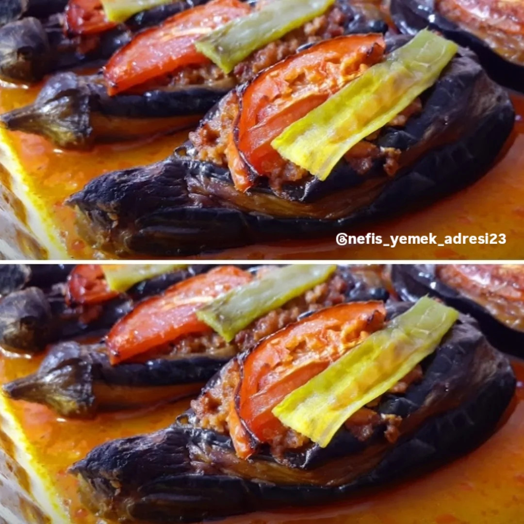500 gr.normal kıyma Yarım çay bardağı zeytinyağı 3 adet kuru soğan 2 adet biber 1 adet domates 1 yemek kaşığı biber salçası 4 diş sarımsak 1 tatlı kaşığı karabiber 1 tatlı kaşığı pulbiber 1 yemek kaşığı tuz Bir tutam maydanoz 12 adet patlıcan