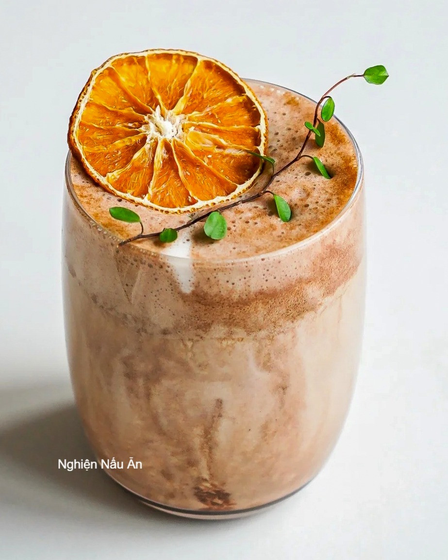 LATTE SỮA ĐẬU NÀNH CA CAO VỊ CAM QUÝT THƠM MỊN, LẠ MIỆNG CỰC CUỐN Nguyên liệu: Pha lớp cacao cà phê Trộn đều: - 40ml cà phê - 5g bột cacao - 15ml rượu rum - 20ml sốt sôcôla Khuấy đến khi hỗn hợp mịn rồi đổ vào đáy ly. Tạo lớp sữa đậu nành bọt mịn - Đánh bông sữa đậu nành đến khi có lớp foam dày, mịn. - Rót nhẹ lên trên lớp cacao cà phê. Thưởng thức Khi uống, bạn sẽ cảm nhận được: - Vị cacao đậm nhẹ - Hương cam quýt thoang thoảng - Lớp sữa đậu nành béo mịn - Một chút ấm nồng từ rum Món này uống nóng hay lạnh đều hợp. Chúc cả nhà thành công với cách làm trên, đừng quên chia sẻ công thức đến nhiều người biết đến hơn nhé cả nhà.