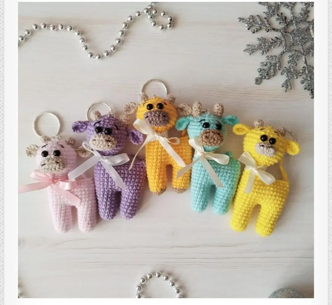 Llaveros de renos tejidos a crochet en colores pastel