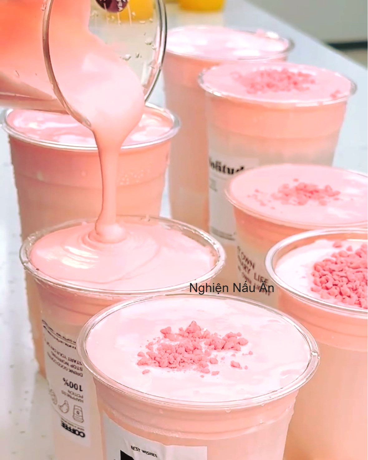 LƯU NGAY CÁCH PHA CHẾ TRÀ SỮA FOAM HOA ANH ĐẠM ĐÀ VỊ NGON Nguyên liệu: 60ml Trà Olong 50ML Sữa cô đặc Icehot 20ML Sữa Đặc LaRosee Nước Đường Hàn Quốc (độ ngọt tùy thích) Bột Milkfoam Hoa Anh Đào Mứt hoa anh đào 50ML Sữa Tươi 30Gr milk Foam 15ML mứt hoa anh đào Đá bi Cách thực hiện: Bước 1: Ủ trà sữa Olong - Cho trà Olong vào túi vải lọc trà, buộc chặt + nước sôi cho vào bình ủ, ủ 20 phút rồi lấy túi trà ra, vắt khô nước, ta thu được nước cốt trà. - Cho 50ML sữa béo cô đặc + 20ML sữa đặc LaRosee. - Cho đá bi vào và khuấy đều cho đá tan hết, cho vào chai ướp lạnh >= 8 tiếng, nhớ lắc đều trước khi dung. Bước 2: Cách tạo bọt sữa milk foam trong trà sữa Cho 50ML sữa tươi để lạnh + 30gr Milk Foam vào ly. Dùng máy sinh tố xay đều hỗn hợp hoặc có thể dùng máy đánh trứng trong khoảng 3 phút là bạn đã có ngay lớp milk foam thơm ngon béo ngậy. Bước 3: Thành phẩm: Cho 15Ml mứt hoa anh đào vào ly, them hỗn hợp trà sữa thực hiện ở bước 1 vào, chế Milk foam hoa anh đào lên cũng. Anh chị có ngay 1 ly trà sữa foam hoa anh đào vừa thơm, vừa lạ miệng, rất cuốn Chúc cả nhà thành công với cách làm trên.