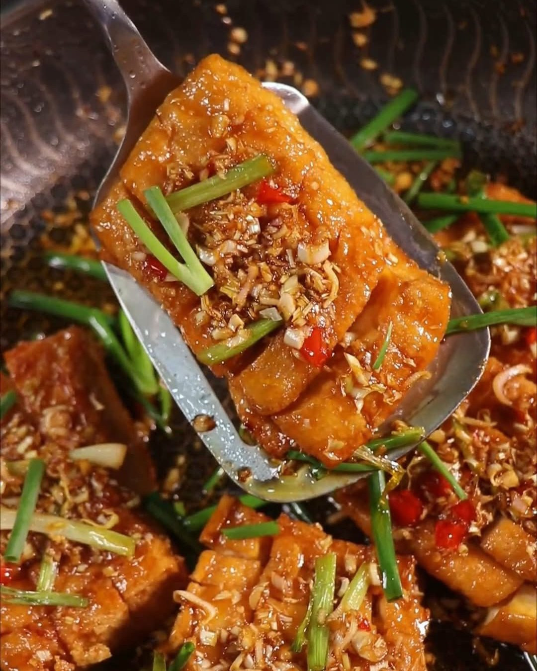 LƯU NGAY CÔNG THỨC ĐẬU HŨ CHIÊN SẢ ỚT MÓN NGON DỄ GÂY “THƯƠNG NHỚ”. Nguyên liệu (2–3 người) - Đậu hũ trắng: 500g - Hạt nêm (chay/thường): ½ muỗng canh - Sả băm: 3 cây - Ớt băm: 2–3 trái - Gốc hành lá băm - Đường: 1 muỗng canh - Nước mắm (chay/thường): 1 muỗng canh - Tương ớt: 1 muỗng canh - Nước lọc: 3 muỗng canh - Dầu ăn, hành lá Cách làm 1. Chiên đậu - Cắt đậu miếng vừa ăn, xoa nhẹ hạt nêm lên mặt đậu. - Chiên vàng đều hai mặt, vớt ra để ráo. - Giữ lại khoảng 2 muỗng dầu trong chảo. 2. Làm sốt sả ớt - Phi thơm sả, ớt và gốc hành. - Cho hỗn hợp sốt vào, đảo đều đến khi hơi sệt. 3. Rim đậu cho thấm - Cho đậu vào chảo, đảo nhẹ 3–4 phút để thấm vị. - Rắc hành lá lên trên. Dọn ra ăn nóng với cơm là chuẩn bài. Món này đơn giản nhưng hương vị rất dễ “ghi điểm” với cả nhà. Chúc cả nhà thành công với cách làm trên, đừng quên chia sẻ công thức để nhiều người biết đến nhé cả nhà.