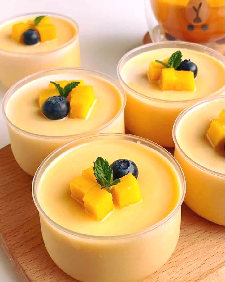 LƯU NGAY CÔNG THỨC LÀM PANNA COTTA XOÀI SIÊU NGON TẠI NHÀ Nguyên liệu: - Thịt Xoài:260g - Whipping cream: 260g - Gelatin bột: 10g - Sữa tươi không đường: 300ml Cách làm: - C ắt xoài thành từng miếng nhỏ, thêm 100ml sữa vào và xay nhuyễn xoài - Ngâm gelatine vào nước khoảng 10 phút cho gelatin nở ra - Đánh bông whipping cream cho đến khi đặc lại, sau đó cho vào tủ lạnh để sử dụng sau ( với whipping cream bột thì pha theo tỉ lệ 1 bột - 1 nước rồi đánh bông lên ) - Đun nóng 200ml sữa ( không đun sôi ) rồi cho gelatin vào và khuấy đều cho gelatin tan hết - Cho xoài xay nhuyễn vào sữa rồi khuấy đều, sau đó đổ whipping cream vào và tiếp tục đảo đều cho hỗn hợp hoà quyện vào nhau - Cho hỗn hợp vào từng cốc và để trong tủ lạnh trong 4 tiếng. - Sau khi để trong tủ lạnh, thêm xoài thái hạt lựu lên mặt cốc là hoàn thành. Chúc cả nhà thành công với cách làm trên