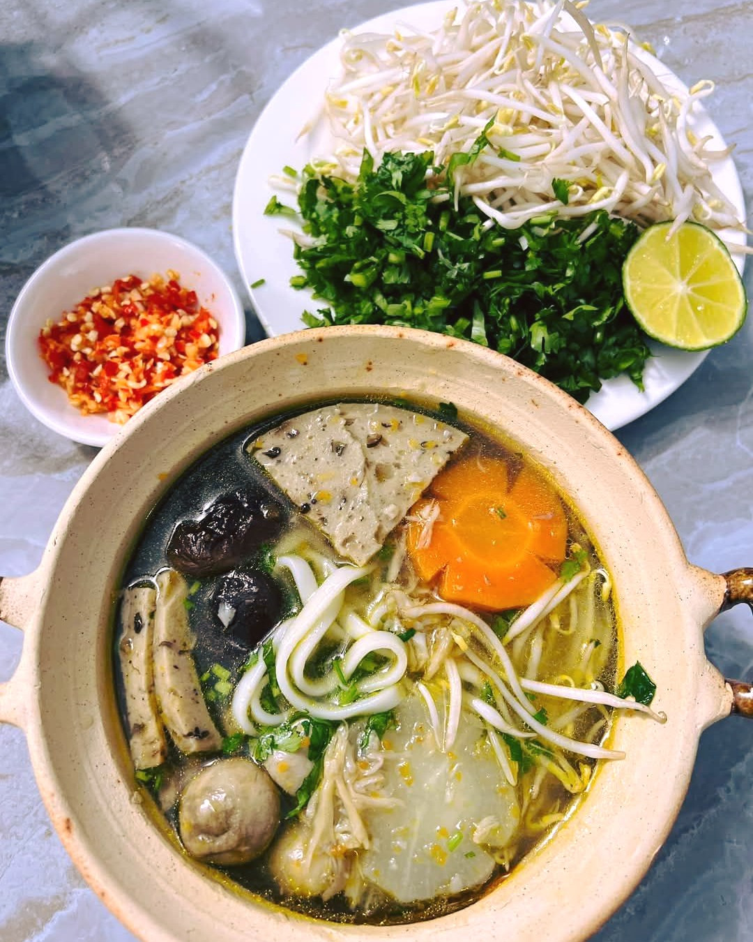 LƯU NGAY CÔNG THỨC NẤU " PHỞ CHAY" NGON CHUẨN VỊ PHỞ TRUYỀN THỐNG 𝗡𝗚𝗨𝗬Ê𝗡 𝗟𝗜Ệ𝗨 : 𝐍𝐮̛𝐨̛́𝐜 𝐝𝐮̀𝐧𝐠: 1 củ cải trắng 1 củ cà rốt 1 bắp su hào hoặc bắp cải nhỏ 1-2 củ hành tây (nướng sơ) 1-2 cây sả (đập dập) 3-4 tai nấm đông cô (ngâm nước) 1 miếng táo hoặc lê (tăng độ ngọt) Gia vị: muối, đường phèn, hạt nêm chay, nước tương, tiêu 𝐍𝐡𝐚̂𝐧 𝐩𝐡𝐨̛̉: Nấm rơm, nấm enoki hoặc nấm kim châm Đậu hũ chiên hoặc chả lụa chay Cà rốt thái lát Giá đỗ, rau thơm, ngò rí, hành lá 𝐏𝐡𝐨̛̉ & 𝐀̆𝐧 𝐤𝐞̀𝐦: Bánh phở tươi Chanh, ớt băm, nước tương Rau thơm: húng quế, ngò gai, giá đỗ 𝗖Á𝗖𝗛 𝗟À𝗠 : 𝟏. 𝐍𝐚̂́𝐮 𝐧𝐮̛𝐨̛́𝐜 𝐝𝐮̀𝐧𝐠: Đun sôi khoảng 2 lít nước, cho củ cải, cà rốt, hành tây nướng, bắp cải, sả vào hầm khoảng 40 phút để lấy vị ngọt. Sau đó vớt bỏ xác rau củ, lọc lấy nước trong. Cho nấm đông cô, gia vị vào nấu thêm 10 phút. 𝟐. 𝐂𝐡𝐮𝐚̂̉𝐧 𝐛𝐢̣ 𝐧𝐠𝐮𝐲𝐞̂𝐧 𝐥𝐢𝐞̣̂𝐮: Nấm rơm, nấm enoki rửa sạch, chần sơ. Chả chay, đậu hũ cắt lát vừa ăn. Rau thơm, giá đỗ rửa sạch. 𝟑. 𝐓𝐫𝐮̣𝐧𝐠 𝐛𝐚́𝐧𝐡 𝐩𝐡𝐨̛̉: Đun nước sôi, cho bánh phở vào trụng sơ rồi để ráo. 𝟒. 𝐇𝐨𝐚̀𝐧 𝐭𝐡𝐚̀𝐧𝐡 𝐦𝐨́𝐧 𝐚̆𝐧: Xếp bánh phở vào tô, thêm nấm, chả chay, đậu hũ. Chan nước dùng nóng, rắc hành lá, ngò rí lên trên. Dùng kèm rau sống, chanh, ớt và nước tương. Chúc cả nhà thành công và thưởng thức ngon miệng!