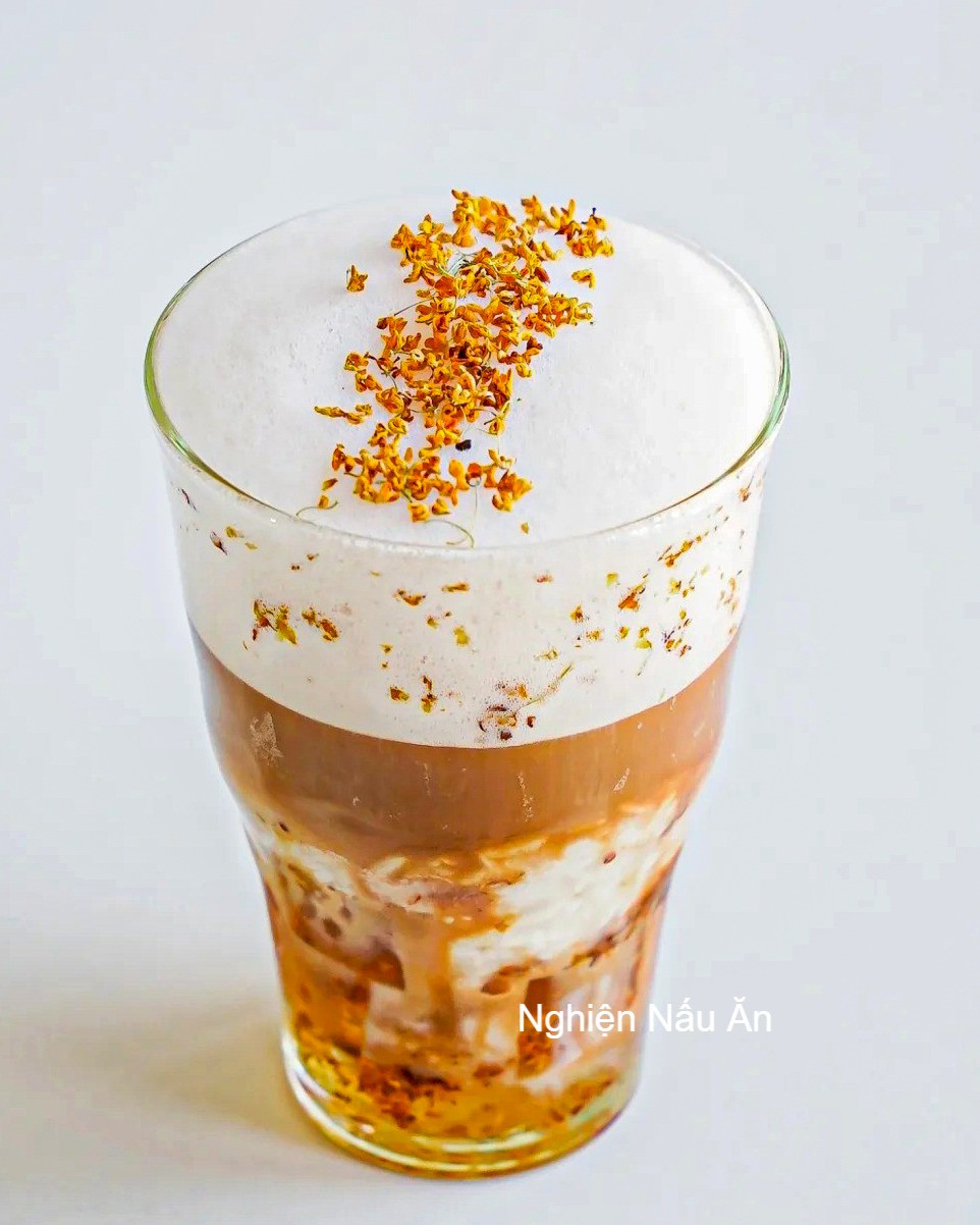 LƯU NGAY CÔNG THỨC PHA CAPPUCCINO YẾN MẠCH GẠO LÊN MEN HOA MỘC CỰC KỲ ĐƠN GIẢN NGAY TẠI NHÀ Cách làm chi tiết Tạo lớp nền - Cho thạch trà ô long hoa mộc vào đáy ly. - Thêm gạo lên men (vị chua nhẹ, thơm dịu). - Rưới siro hoa mộc quanh thành ly để tạo màu và hương thơm. Làm lớp cappuccino yến mạch - Đánh bông sữa yến mạch nóng đến khi có lớp foam dày, mịn. - Rót vào ly đến khoảng 9/10 dung tích. Hoàn thiện ly cappuccino - Rưới cà phê lên trên để tạo lớp màu tương phản. - Rắc hoa mộc khô để trang trí và tăng hương thơm. Thành phẩm Ly cappuccino yến mạch gạo lên men hoa mộc có: - Lớp thạch ô long thanh nhẹ - Gạo lên men dẻo thơm - Sữa yến mạch béo dịu - Cà phê đậm nhẹ - Hương hoa mộc thoang thoảng rất “đã” Một ly vừa đẹp vừa lạ, hợp uống nóng hoặc ấm. Chúc cả nhà thành công với cách làm trên, đừng quên chia sẻ công thức đến nhiều người biết đến hơn nhé cả nhà.