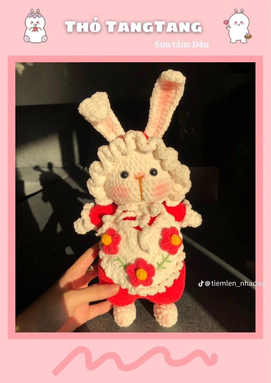 Mẫu thỏ móc len dễ thương với trang phục hoa