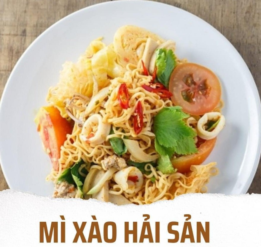 NGUYÊN LIỆU - Tôm tươi 6 con - Mực 250 gr ( tươi) - Mì vắt 1/2 gói (Mì trứng hoặc mì gói 4 gói) - Hành tây 1/4 củ - Cần tây 2 nhánh - Đậu Hà Lan 50 gr (Loại nguyên trái) - Tỏi 20 gr - Ớt 1 trái - Nước dùng gà 80 ml - Nước tương 2 muỗng canh - Đường trắng 5 gr - Dầu mè 1 muỗng canh - Rượu trắng 15 ml - Bột bắp 15 gr - Cà rốt 1 củ