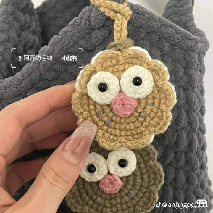 Móc len hình mặt cú đáng yêu làm móc khóa dễ thương
