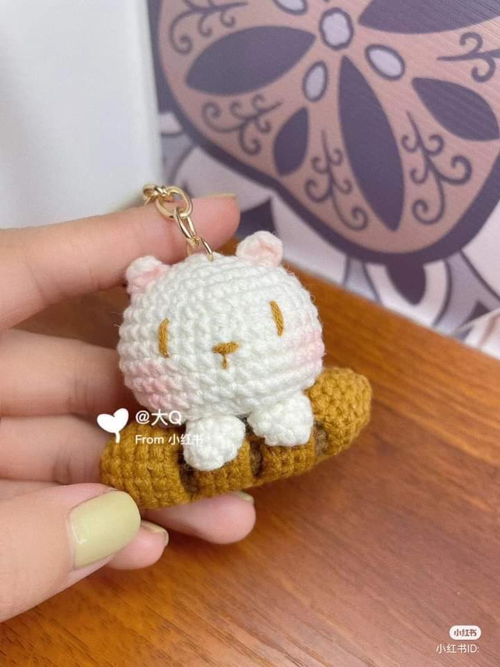 Móc len hình mèo trên bánh mì, phụ kiện dễ thương