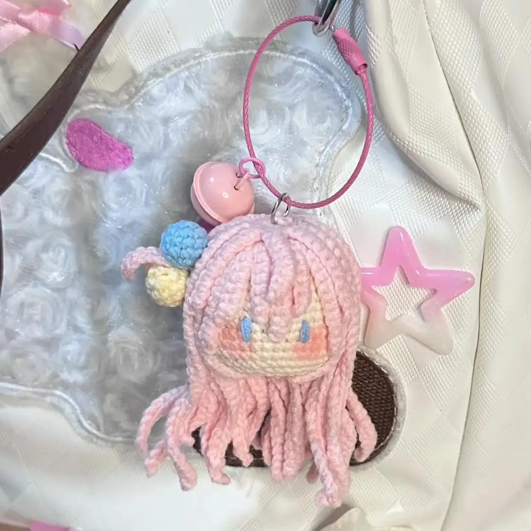 Móc Len Móc Khóa Hình Nhân Vật Tóc Hồng Đáng Yêu