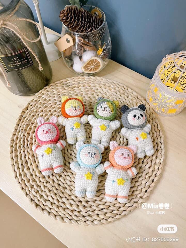 Móc len thú bông đáng yêu trong trang phục phi hành gia