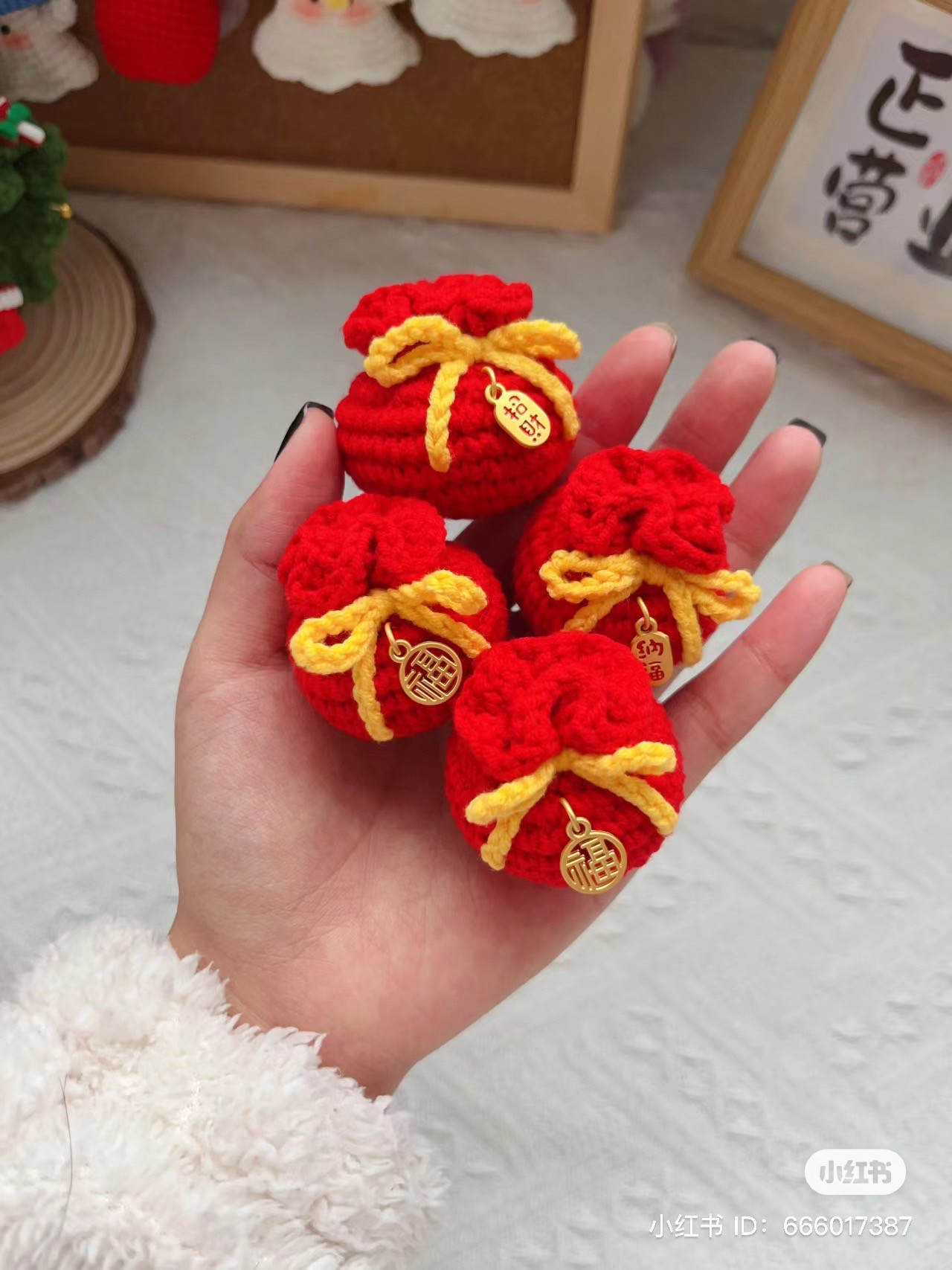 Móc len túi đỏ may mắn trang trí tết Nguyên Đán