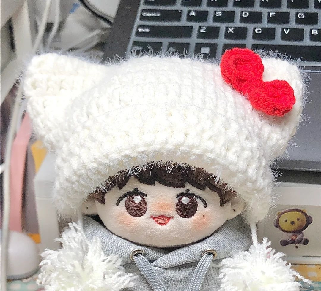 Mũ len hình mèo dễ thương với trái tim đỏ