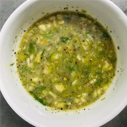 Làm muối chấm gà ăn hết cả con Nguyên Liệu: - 6 trái tắc gần chín mọng nước.(trái quất) - 2 thìa cà phê muối bột canh ( không có có thể thay bằng muối tinh nhé cả nhà) - 3 - 4 trái ớt xanh hoặc ớt đỏ, tùy khẩu vị. - 1/3 thìa cà phê tiêu. - 1/3 thìa cà phê bột ngọt. - 2 thìa cà phê đường. - 1- 2 thìa cà phê sữa đặc. Các bạn đừng sợ ngọt nhé, vì độ mặn của muối và độ chua của tắc đã dằn vị lại rồi. - 2 - 3 nhánh tỏi nhỏ. - 1 nhánh gừng nhỏ. - 1 củ hành khô, nếu được hãy nướng hành và gừng lên để bát nước chấm thơm hơn nhé. - 3 lá chanh. ✅Thực Hiện: - tắc vắt lấy nước , giữ lại 2 - 3 vỏ tắc. - Hành , tỏi, ớt , lá chanh, gừng, vỏ tắc băm thật nhuyễn. - ⛔️ cho tất cả các nguyên phụ liệu vào bát và khoáy đều lên, có thể cho vào mấy xay, xay cho nhanh. - Thế là đã hoàn thành xong bát nước chấm bất bại cho tất cả các món về gà. Cũng có thể chấm được nhiều thứ khác tuỳ sở thích của các bạn