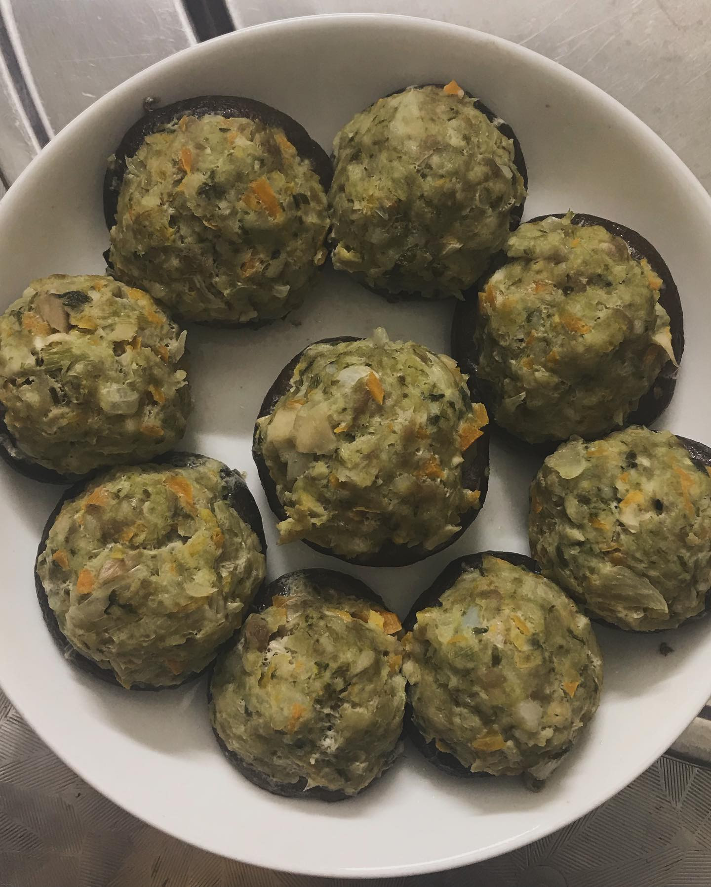 Nguyên liệu cơ bản là có: thịt băm/xay, nấm hương (chân nấm thì xay lẫn với thịt còn mũ nấm thì làm đế), hành lá, hành tây, cà rốt. Xong nêm một chút hạt nêm với mì chính. Cơ bản là các nguyên liệu xay nhỏ rồi cho lên mũ nấm. Sau đấy thì cho vào nồi hấp, nước bắt đầu sôi thì hạ lửa và để thêm 20p nữa.