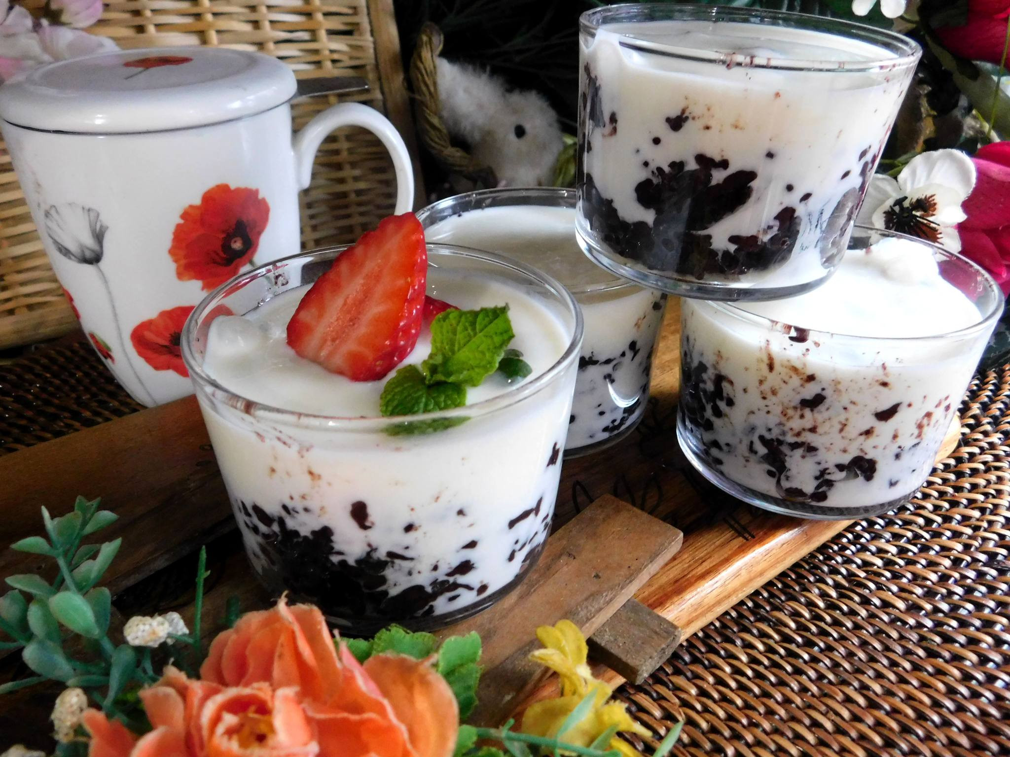 Nếp Cẩm Sữa Chua Dẻo – Sự Kết Hợp Hoàn Hảo Giữa Vị Dẻo Ngọt và Sánh Mịn Nguyên liệu cho phần sữa chua: 1/2 lon sữa đặc 100g đường 250ml nước lạnh 1 lít sữa tươi không đường 200g sữa chua cái (hoặc sữa chua không đường - Greek yogurt) Nguyên liệu cho phần nếp cẩm: 200g nếp cẩm (khoảng 1 chén) 130g đường đen (có thể dùng đường tán) Một chút muối Nếu có lá nếp/lá dứa, thêm vài lá để tạo mùi thơm đặc trưng Cách thực hiện: Bước 1: Chuẩn bị sữa chua Đun nước với đường cho đến khi tan hoàn toàn. (Bạn có thể dùng nước sôi để hòa tan đường nhanh chóng.) Trong một âu lớn, hòa tan sữa đặc với nước đường. Sau đó, thêm sữa tươi và khuấy đều. Cuối cùng, cho sữa chua cái vào, khuấy đều và lọc hỗn hợp qua rây để đảm bảo sữa chua mịn màng. Đổ hỗn hợp vào các hũ nhỏ tùy ý, đậy nắp kín. Xếp các hũ sữa chua vào nồi, đổ nước nóng khoảng 60°C ngập 1/3 hũ, đậy nắp nồi và ủ trong lò nướng KHÔNG bật lò trong 8 tiếng. Khi hoàn thành, sữa chua sẽ có độ sánh dẻo mịn màng. Ghi chú: Nếu thời tiết nóng, chỉ cần phủ khăn trùm nồi và để ở góc bếp, ủ 10-12 tiếng. Bước 2: Nấu nếp cẩm Vo sạch nếp cẩm và cho vào nồi cùng 2,5 chén nước, nấu chín. Khi nồi bật nút xanh, thêm đường tán vào và trộn đều. Bấm nút nấu lại một lần nữa để dẻo ngon hơn. Bạn có thể nấu thêm lần ba nếu muốn mềm mịn hơn nữa. Bước 3: Trình bày và thưởng thức Múc nếp cẩm ra ly nhỏ, sau đó thêm sữa chua đã khuấy mịn vào. Kết hợp giữa vị dẻo ngọt của và sự sánh mịn của sữa chua, đây chắc chắn là món ăn lý tưởng cho những buổi sáng tươi sáng hay những buổi xế chiều nhẹ nhàng. Chúc các bạn thành công và thưởng thức món nếp cẩm sữa chua dẻo thật ngon miệng!