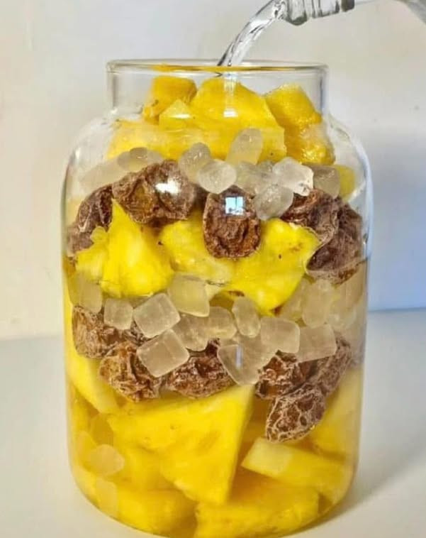R.ượu ô mai dứa Chuẩn bị nguyên liệu : - R.ượu trắng - 1 quả dứa - Đường phèn - Ô mai xí muội - Bình thuỷ tinh Cách Chế biến : 1 . Trước tiên cắt dứa thành từng miếng nhỏ . Nhớ sử dụng dứa ngọt , nếu dứa chua thì tăng số lượng đường phèn . 2 . Chuẩn bị 1 lọ thuỷ tinh , rửa sạch để ráo nước . 3 . Tỉ lệ là : 1 dứa - 0,5 ô mai - 0,5 đường phèn . Cho lần lượt theo thứ tự : 1 lớp dứa - 1 lớp ô mai - 1 lớp đường phèn , lặp lại đến khi đầy lọ thì đổ r.ượu vào . 4 . Đậy kín , bảo quản ở nơi khô ráo , tránh ánh sáng mặt trời trong 20 ngày . Là có thể thưởng thức được Ẩn bớt