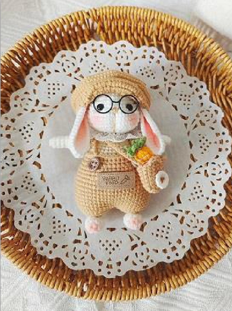 Очаровательный кролик в очках и шляпе, связанный крючком