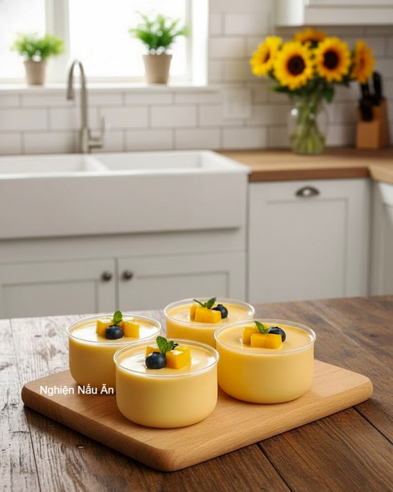 LƯU NGAY CÁCH LÀM PANNA COTTA XOÀI SIÊU NGON TẠI NHÀ. Nguyên liệu: - Thịt Xoài:260g - Whipping cream: 260g - Gelatin bột: 10g - Sữa tươi không đường: 300ml Cách làm: - C ắt xoài thành từng miếng nhỏ, thêm 100ml sữa vào và xay nhuyễn xoài - Ngâm gelatine vào nước khoảng 10 phút cho gelatin nở ra - Đánh bông whipping cream cho đến khi đặc lại, sau đó cho vào tủ lạnh để sử dụng sau ( với whipping cream bột thì pha theo tỉ lệ 1 bột - 1 nước rồi đánh bông lên ) - Đun nóng 200ml sữa ( không đun sôi ) rồi cho gelatin vào và khuấy đều cho gelatin tan hết - Cho xoài xay nhuyễn vào sữa rồi khuấy đều, sau đó đổ whipping cream vào và tiếp tục đảo đều cho hỗn hợp hoà quyện vào nhau - Cho hỗn hợp vào từng cốc và để trong tủ lạnh trong 4 tiếng. - Sau khi để trong tủ lạnh, thêm xoài thái hạt lựu lên mặt cốc là hoàn thành. Chúc cả nhà thành công với cách làm trên. Cả nhà nhớ follow kênh để học thêm nhiều công thức mới nhé.