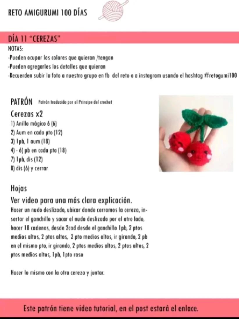 Patrón de Amigurumi: Cerezos en 100 Días de Reto