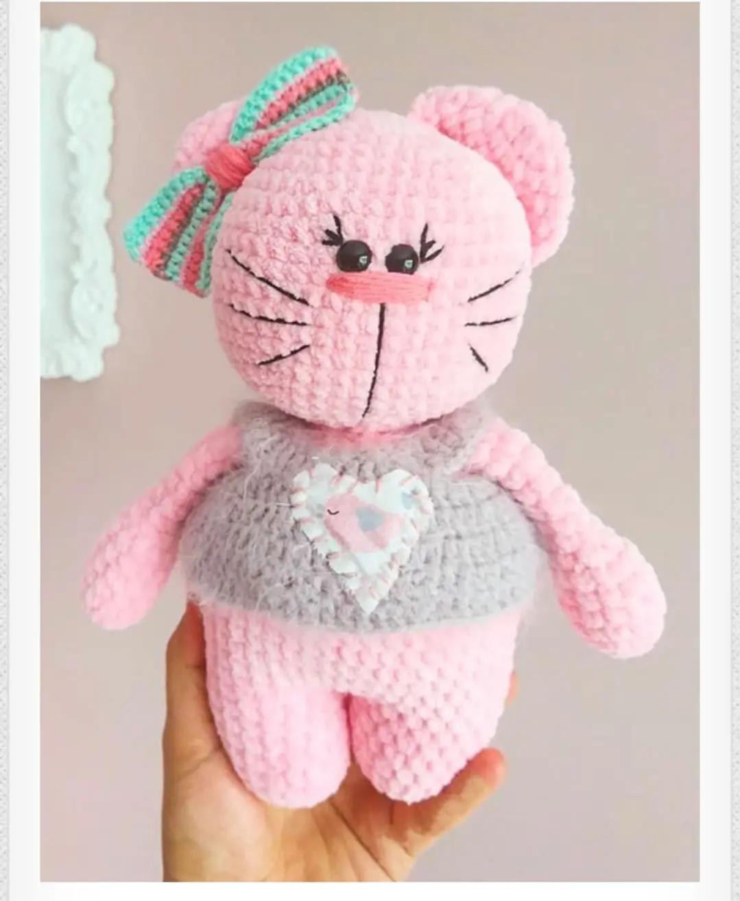 Patrón de ganchillo: adorable muñeco de peluche rosa con lazo