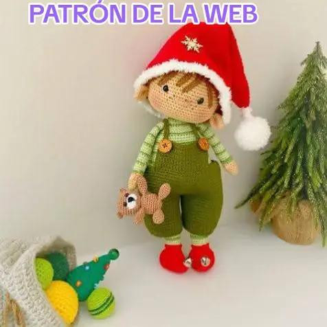 Patrón de muñeco navideño con sombrero rojo y osito