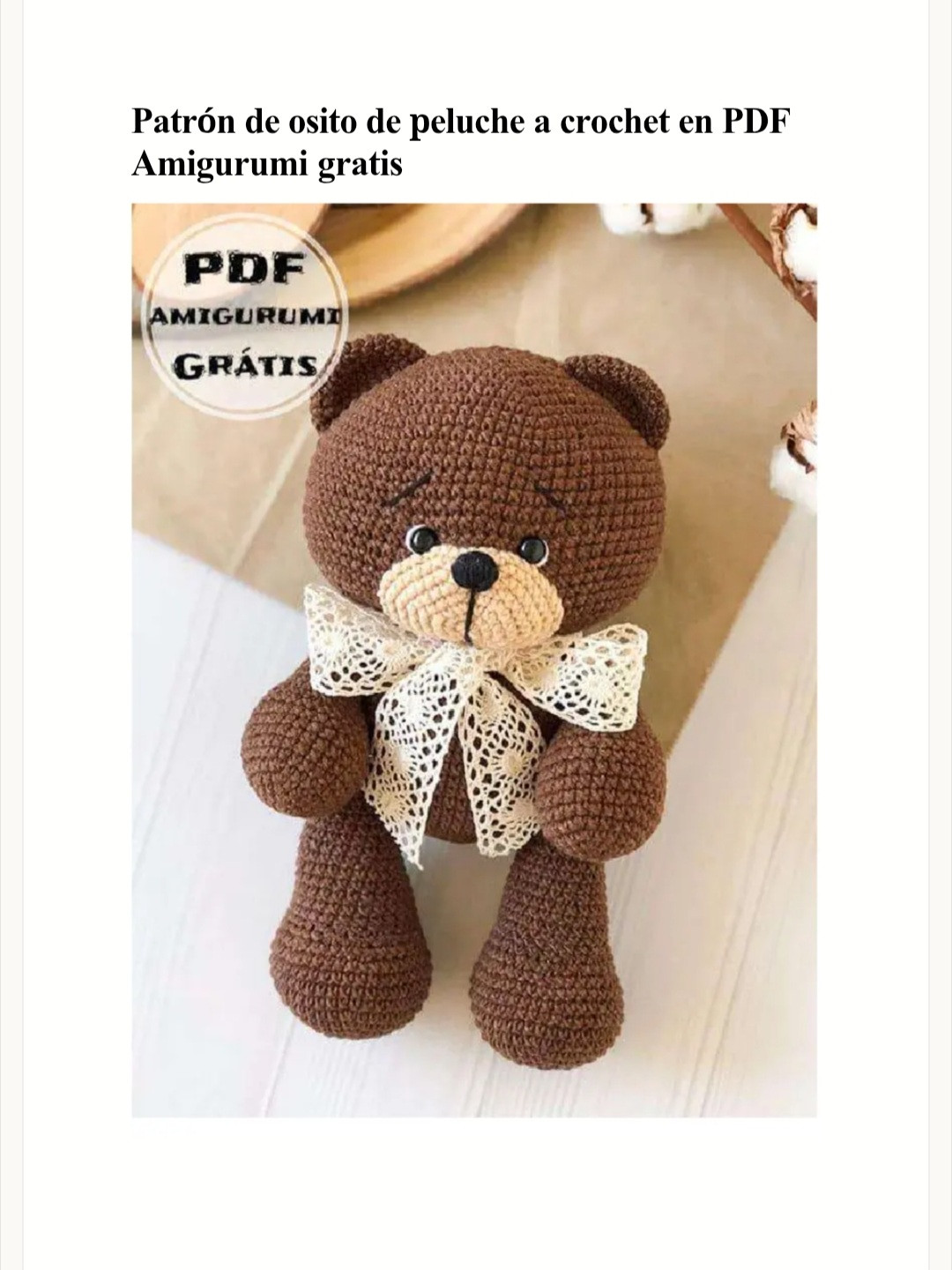 Patrón de osito de peluche amigurumi fácil y gratis en PDF