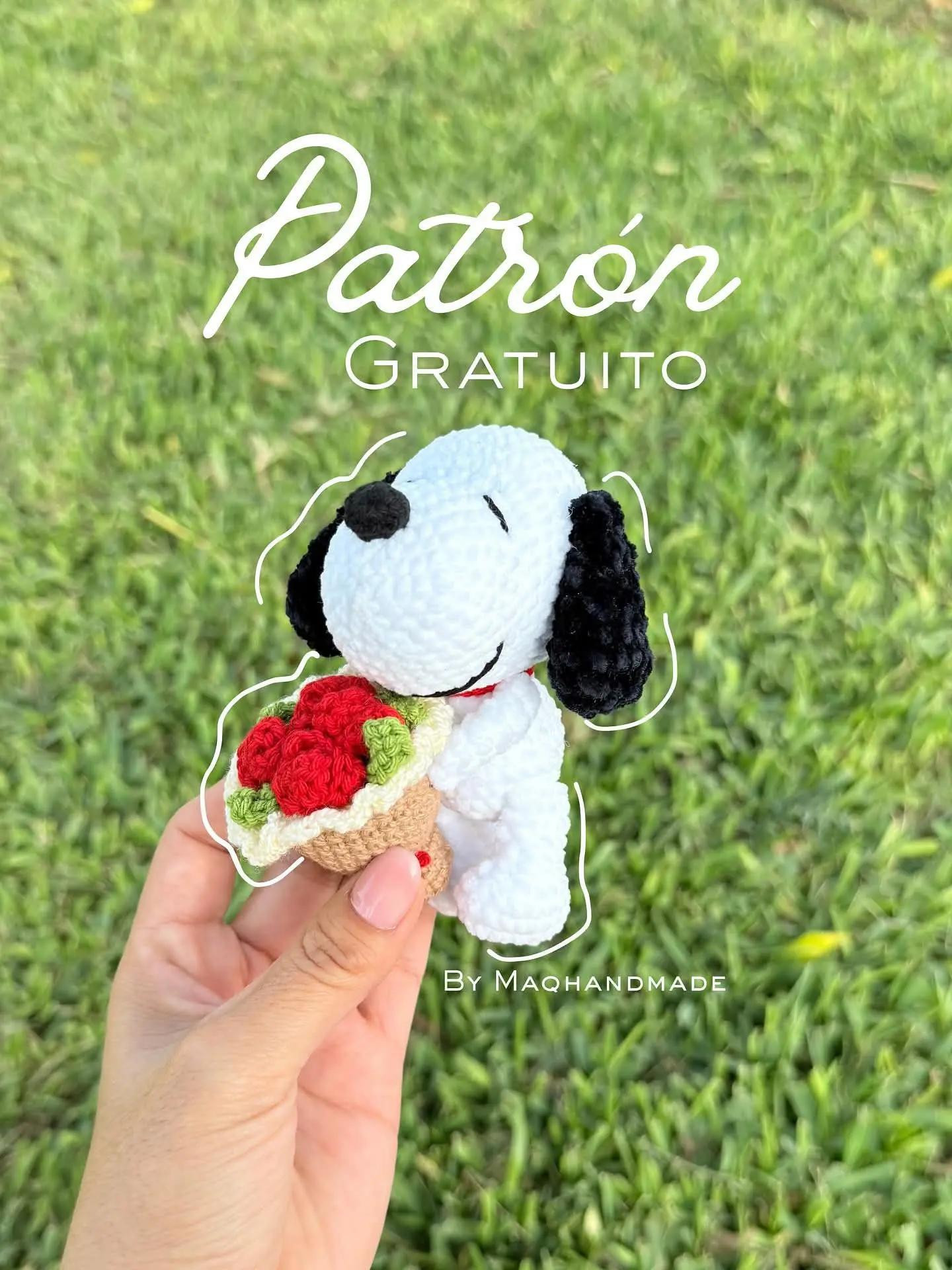 Patrón de perro con ramo de flores - Amigurumi fácil