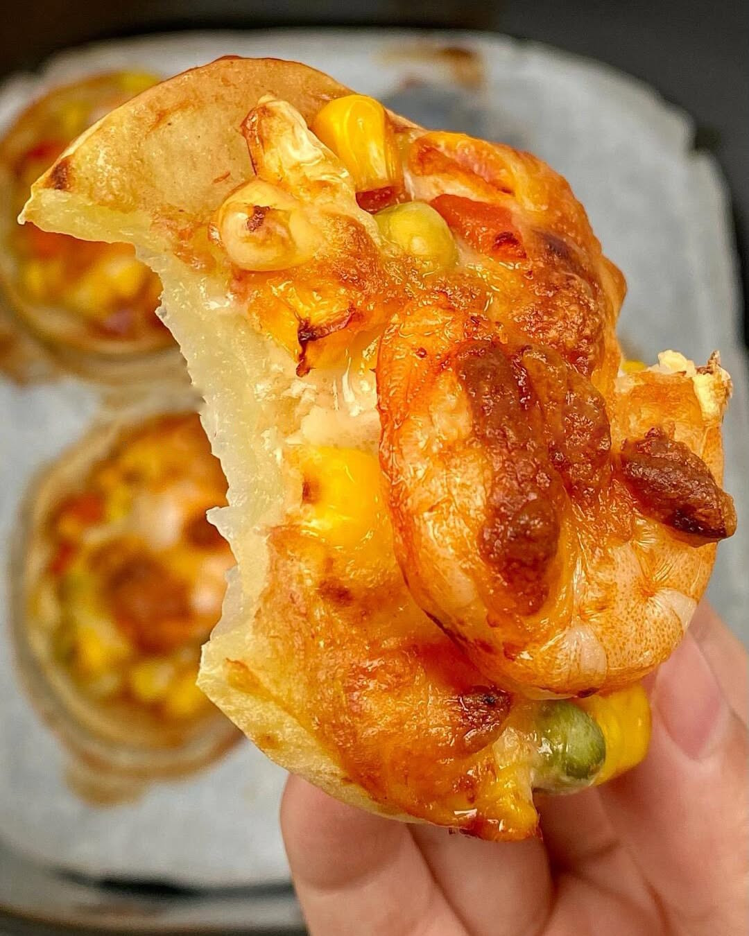 LƯU NGAY CÁCH LÀM PIZZA KHOAI TÂY MINI SIÊU NGON BẰNG NỒI CHIÊN KHÔNG DẦU. Nguyên liệu: - 6 con tôm (đã lột vỏ) - 2 củ khoai tây - Bắp hạt, cà rốt, đậu hà lan - Phô mai bào, tương cà, sốt mayonnaise Cách làm: - Bắp hạt, cà rốt và đậu hà lan chần qua nước sôi, vớt ra để ráo. - Khoai tây rửa sạch, g.ọt vỏ, th.ái lát dày. - Quét 1 lớp tương cà lên. Thêm bắp hạt, cà rốt và đậu hà lan. Đặt thêm 1 con tôm rồi rắc phô mai bào lên bề mặt. - Cho vào nồi chiên không dầu, nướng ở nhiệt độ 170 độ C trong 15 phút rồi lấy ra thưởng thức! Chúc cả nhà thành công với cách làm trên.