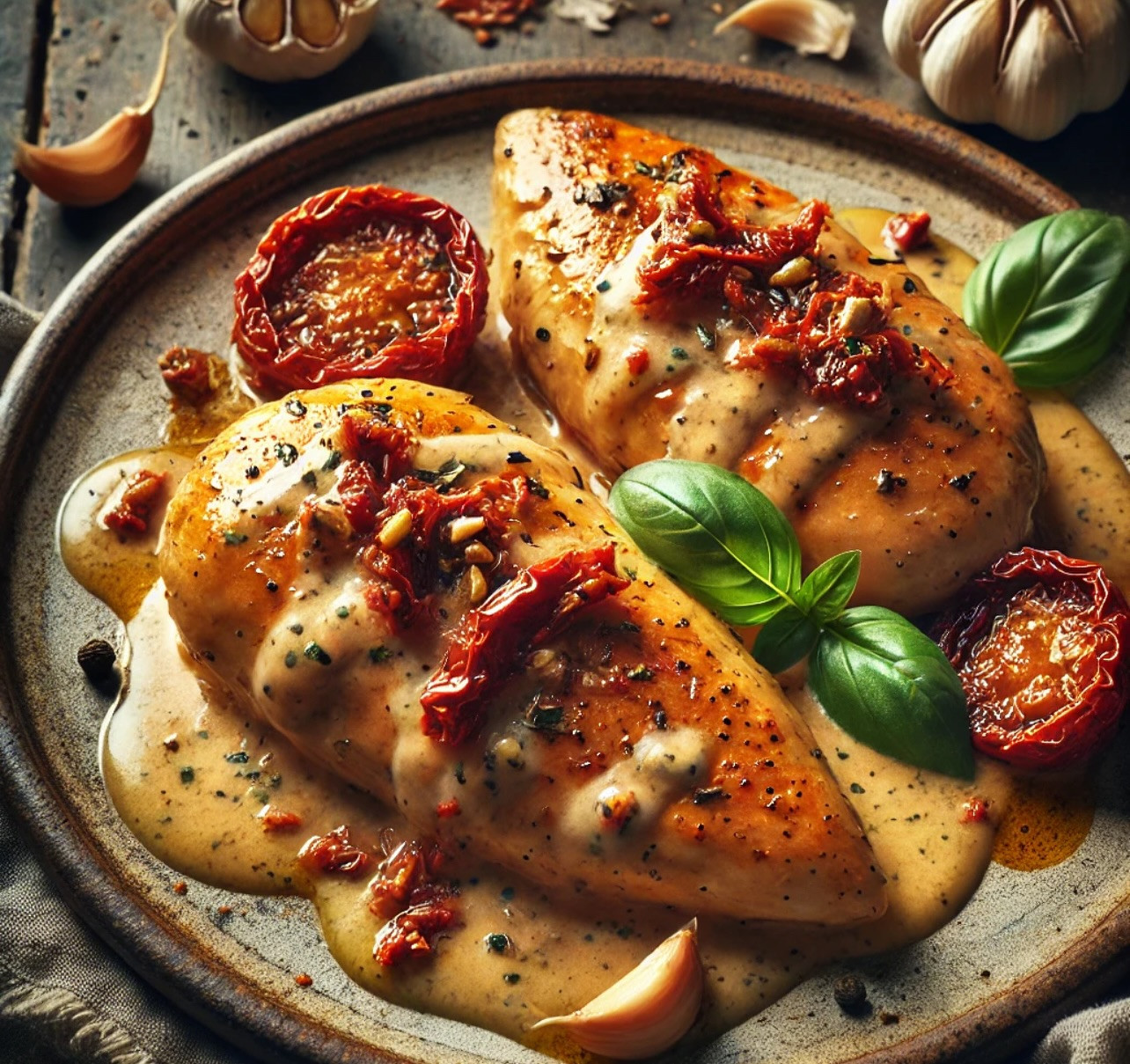 🍗 Chicken Breasts with Roasted Garlic & Sun-Dried Tomato Cream