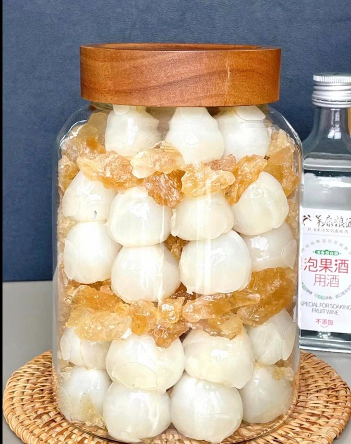 R.ượu vải Chuẩn bị nguyên liệu : - Vải - R.ượu - Đường phèn Cách Chế biến : 1 . Tỉ lệ vải , r.ượu , đường phèn là 1 : 1 : 0,4 ( Ví dụ : 500g vải , 500ml r.ượu trắng , 200g đường phèn ) 2 . Vải rửa sạch , bóc vỏ . 3 . Chuẩn bị 1 lọ thuỷ tinh , rửa sạch để ráo nước . 4 . Cho lần lượt 2 lớp vải - 1 lớp đường đến khi đầy lọ thì đổ rư.ợu vào . 5 . Đậy kín , để ở nơi khô ráo , tránh ánh sáng mặt trời . Sau nửa tháng là có thể dùng được