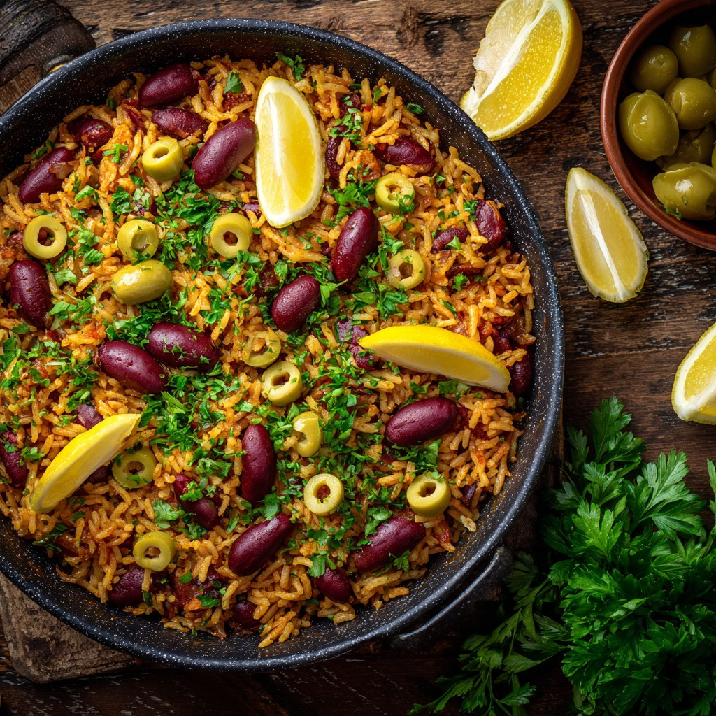 Saffron-Infused Spanish Rice with Vibrant Beans and Olives