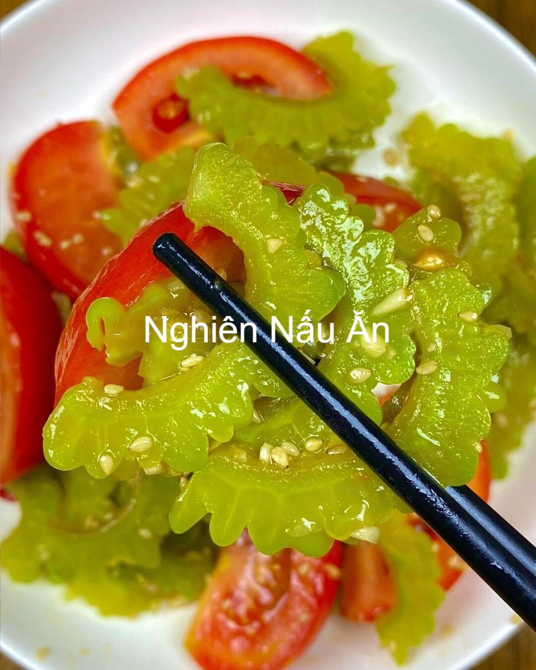 CÁCH LÀM SALAD MƯỚP ĐẮNG VỚI CÀ CHUA THANH MÁT, GIÒN NGON CỰC LẠ MIỆNG. Nguyên liệu: - 1 quả mướp đắng - 2 quả cà chua - 2 thìa xì dầu - 1 thìa dầu hào - 1 thìa giấm gạo - 1 thìa đường trắng - 1 ít gừng, tỏi, ớt - 4 thìa nước lọc - 1 thìa mè rang - 1 thìa dầu mè Cách làm: - Pha nước sốt: trộn đều xì dầu, dầu hào, giấm, đường, mè rang, nước lọc, dầu mè, gừng tỏi ớt b.ăm. - Mướp đắng c.ắt lát, luộc nhanh với chút muối và dầu ăn, vớt ra ngâm nước lạnh cho giòn rồi để ráo. - Cà chua c.ắt múi cau, cho vào chung với mướp đắng. Rưới sốt đã pha, trộn đều rồi thưởng thức! Chúc cả nhà thành công với cách làm trên.