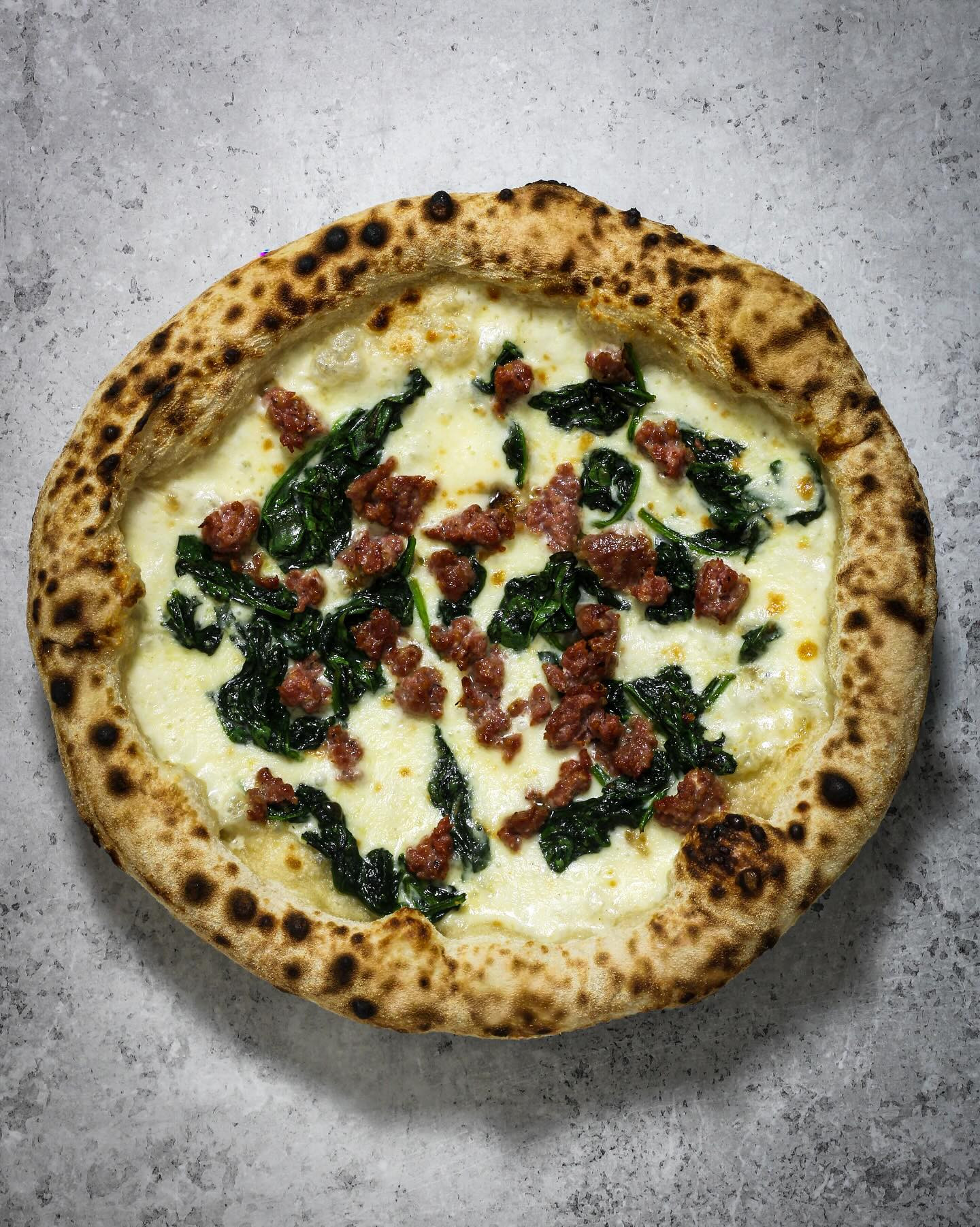 Salsiccia Delight: Spinach & Fior di Latte Harmony