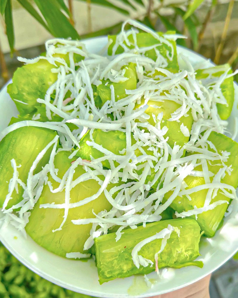 Nay mình ra chợ mua ít củ sắn về thử làm sắn hấp cốt dừa lá nếp, món ăn dân dã. Khi hấp xong, mùi thơm của lá nếp quyện cùng nước cốt dừa béo ngậy, miếng sắn bở tơi dẻo dẻo, ăn kèm nước cốt dừa sánh mịn thì đúng là ngon khó cưỡng.