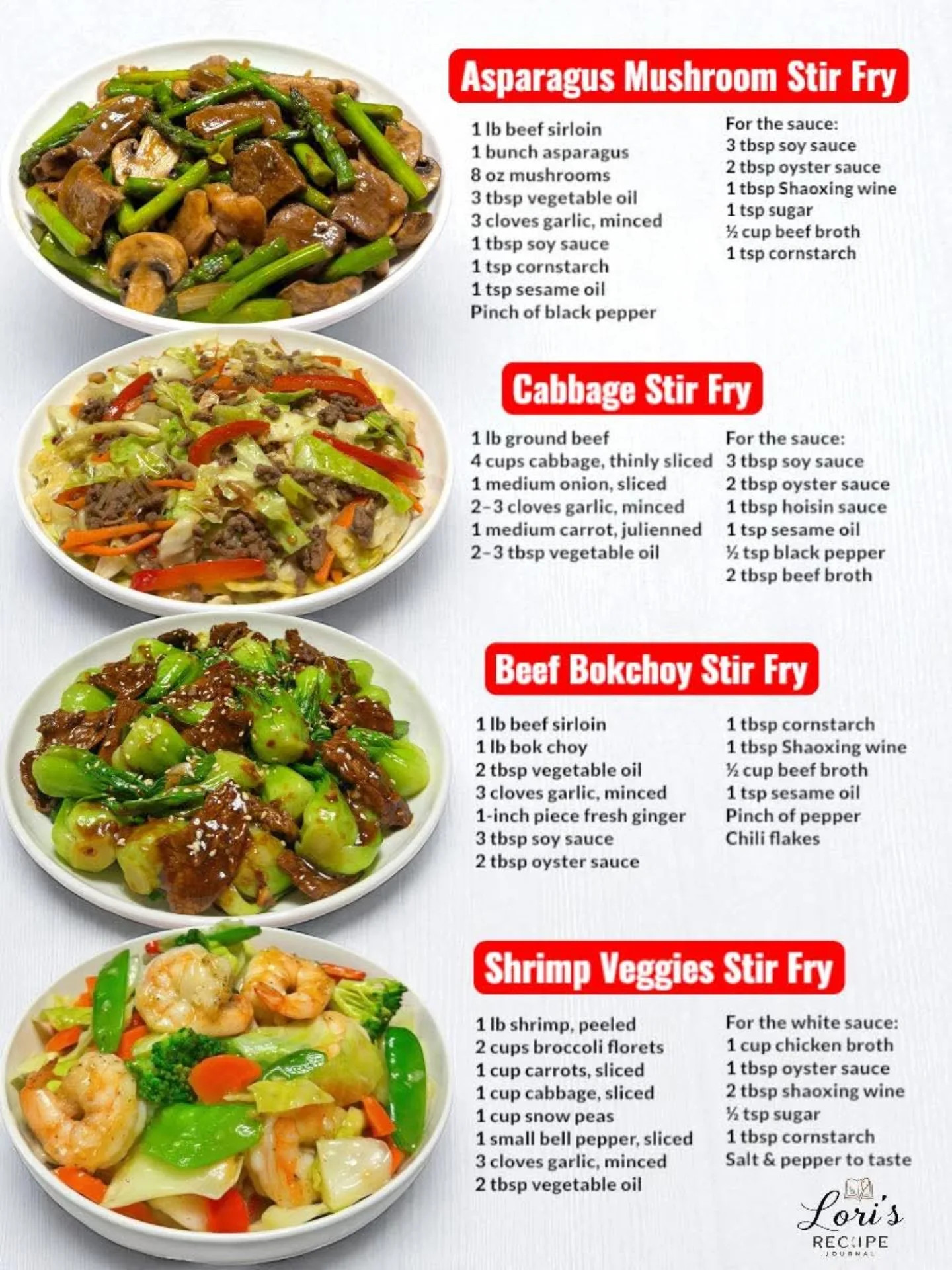 For the sauce: 3 tbsp soy sauce 2 tbsp oyster sauce 1 tbsp Shaoxing wine (or dry sherry, optional) 1 tsp sugar ½ cup beef broth or water 1 tsp cornstarch (mixed with 2 tbsp water)