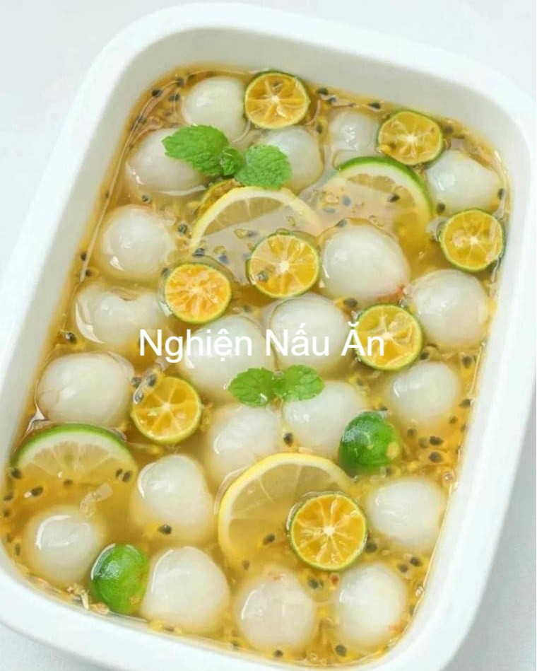 LƯU NGAY CÔNG THỨC SIRO VẢI CHANH DÂY CỰC KỲ NGON VÀ DỄ LÀM TẠI NHÀ. Chuẩn bị nguyên liệu: - 10 quả vải thiều - 100g đường phèn - 1 quả chanh - 5 quả tăc Cách Chế biến: 1. Chanh, tắc chà xát với muối rồi rửa lại bằng nước cho sạch. Thái lát, bỏ hạt - Vải bóc vỏ, bỏ hạt - Chanh dây rửa sạch, cắt đôi lấy thịt quả 1. Cho lượng nước vừa đủ vào nồi, thêm đường phèn, nấu đến khi đường phèn tan hoàn toàn thì cho vải vào nâu trong 2 phút 2. Sau khi nguội thì cho chanh dây, chanh lát, tắc vào. Để vào tủ lạnh khoảng 2h rồi lấy ra thêm đá viên và thưởng thức. Chúc cả nhà thành công với công thức trên.