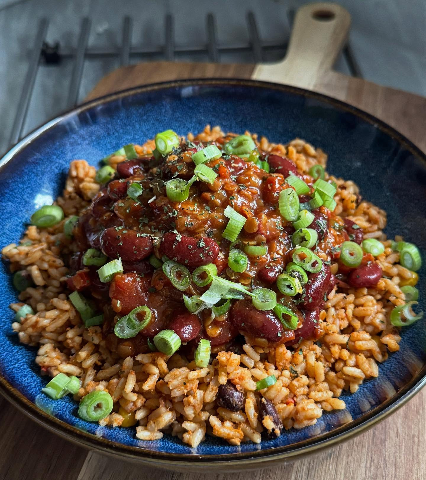 Smoky lentil chilli with Mexican rice 🌶️ A cosy, high protein vegetarian chilli recipe made with lentils and @boldbeanco Queen Kidney Beans. Perfect for easy weeknight dinners or meal prep.