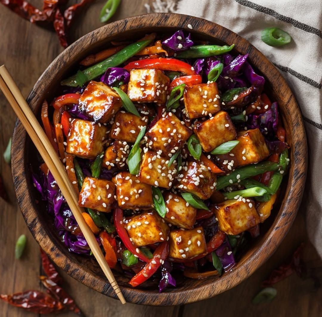 Spicy Szechuan Tofu with Colorful Veggie Stir-Fry