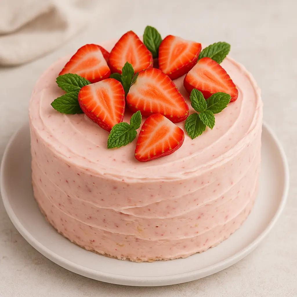 #StrawberryCake #HomemadeCake #CakeLovers #BakingLove #CakeArt