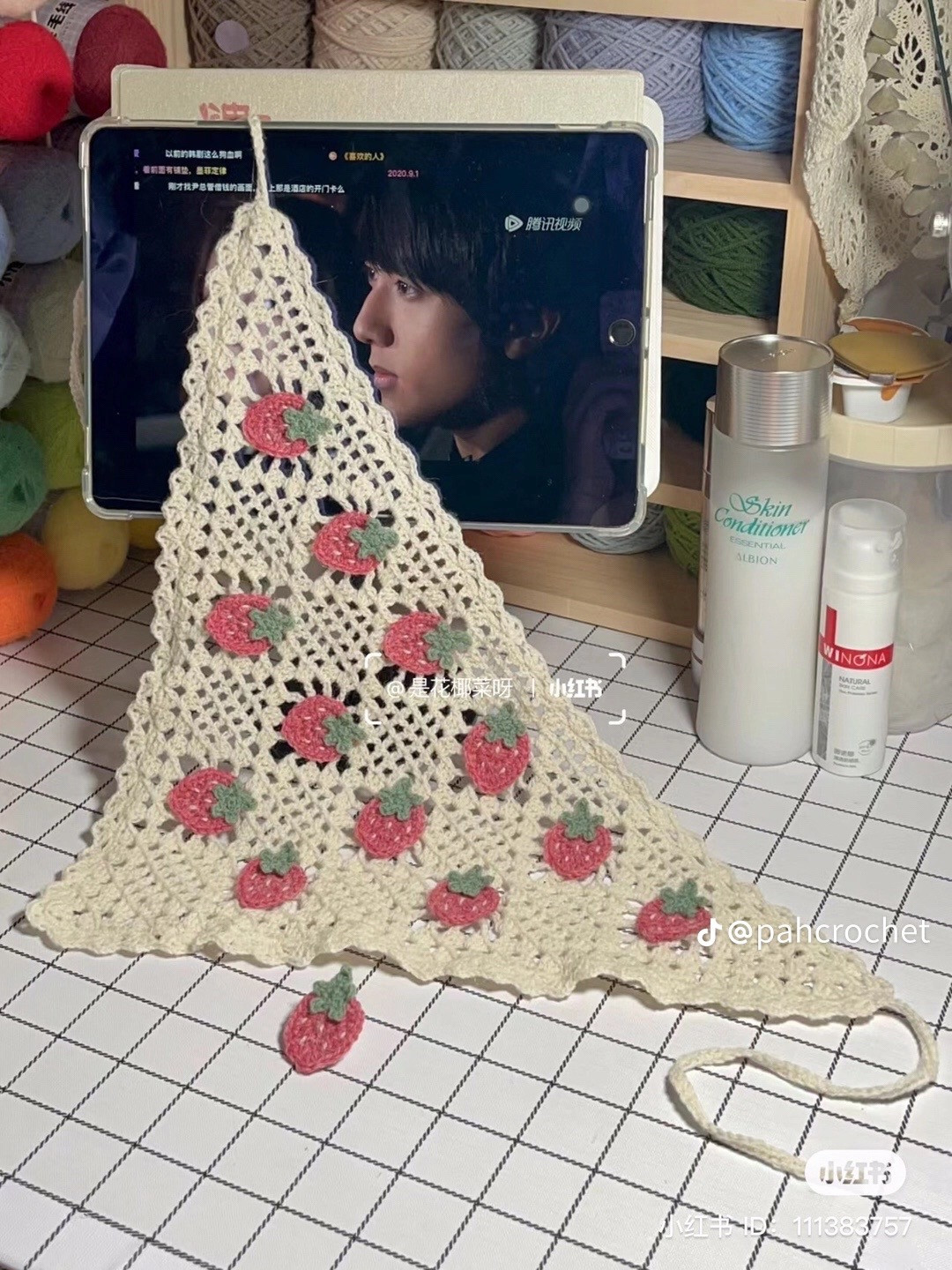 Strawberry Crochet Triangle Scarf Pattern with Lace Details