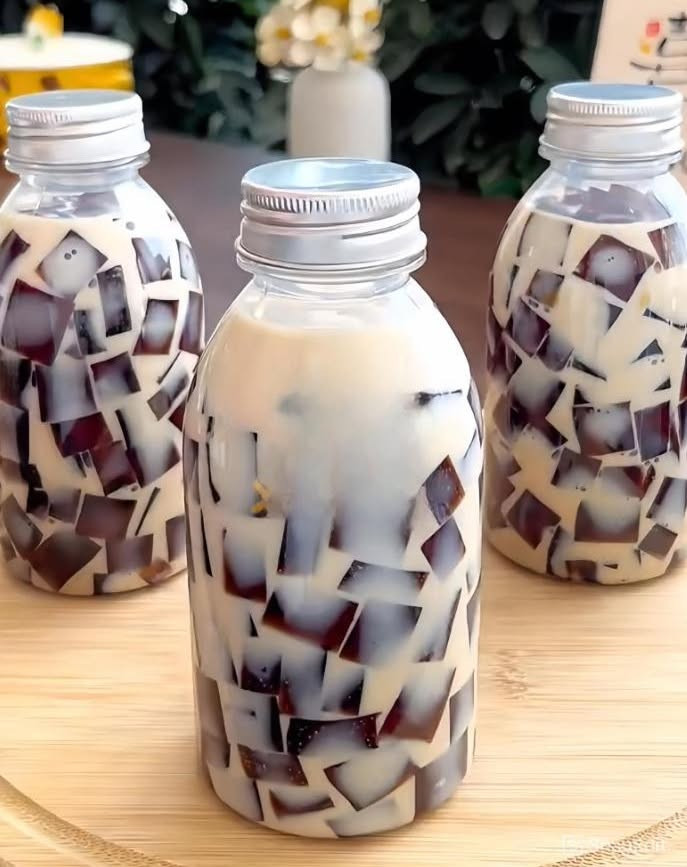 CÁCH LÀM SỮA THẠCH ĐƯỜNG NÂU GIẢI KHÁT CỰC NGON . Chuẩn bị nguyên liệu : - 500ml nước - 5g bột rau câu - 70g đường - Sữa tươi ( không đường ) Cách Làm : 1 . Trộn đều đường nâu và bột rau câu . 2 . Cho nước vào nồi , nấu đến khi thấy hơi nóng bốc lên thì cho hỗn hợp bột rau câu vào , khuấy đều và nấu đến khi sôi lăn tăn thì tắt bếp . 3 . Đổ ra từng chai nhỏ ( chỉ đổ 1/2 chai ) , đợi nguội cho vào ngăn mát tủ lạnh trong 3-4 tiếng . 4 . Sau đó lấy ra , thêm sữa tươi và thưởng thức . Chúc các bạn thành công với công thức này nhé