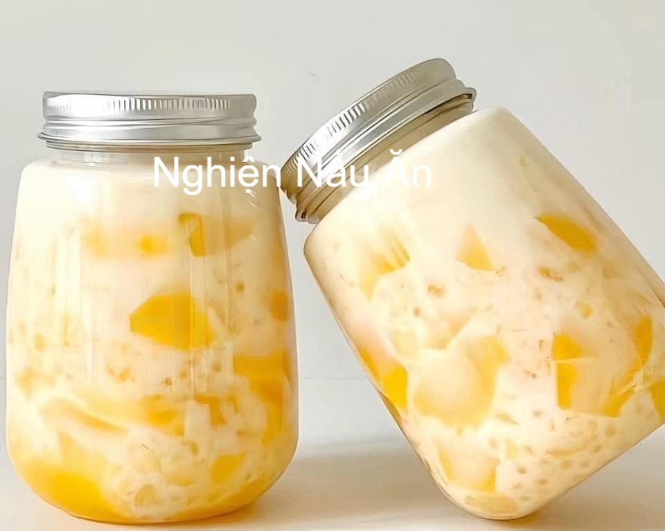 LƯU NGAY CÔNG THỨC LÀM SỮA THẠCH XOÀI THƠM NGON TẠI NHÀ. Nguyên liệu: - 200g xoài - 3g bột rau câu dẻo jelly - 1l nước - 80g đường - 1 lít sữa - 30g bột báng Cách làm: - Xoài gọt vỏ bỏ hạt thu được 200g thịt xoài, rồi cho vào máy sinh tố, thêm 200ml nước và xay nhuyễn, dùng rây lọc lại cho nước hết cặn - Cho 800ml nước vào nồi, rồi cho đường và bột rau câu dẻo vào và khuấy đều, ngâm 15p - Bắc nồi lên bếp nấu lửa nhỏ, khuấy thật đều cho đến khi hỗn hợp sôi khoảng 2 phút thì tắt bếp, cho xoài đã xay nhuyễn vào rồi rồi khuấy thật đều - Đổ hỗn hợp này vào ly, hũ ( khoảng 1/2 hoặc 1/3 ly ), để nguội rồi bảo quản ngăn máy tủ lạnh 3-4 tiếng ( nếu sử dụng chai nhựa thì đợi nguội khoảng 50 độ C rồi cho vào ) - Nấu nước sôi rồi cho bột báng vào, nấu 15 phút và ủ 15 phút, vớt ra để ráo nước - Lấy hũ thạch ra, cho bột báng vào và sữa tươi vào, dùng ống hút hay thìa khuấy đều lên và thưởng thức. Chúc cả nhà thành công với cách làm trên nhé.