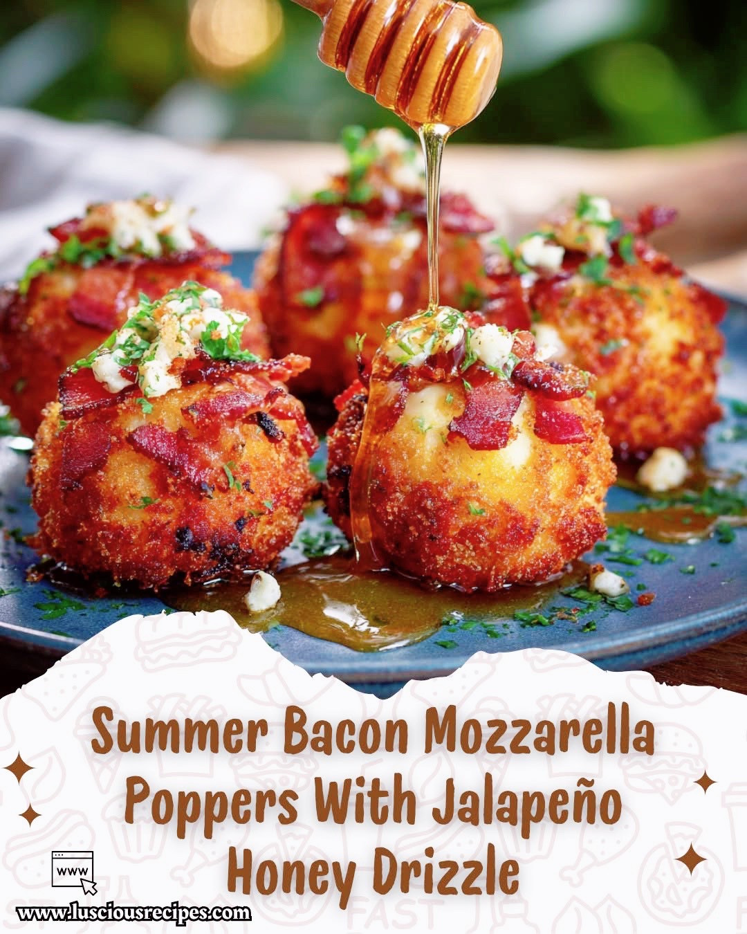 Get ready to elevate your summer snack game with these mouthwatering bacon mozzarella poppers! The perfect combination of savory bacon, gooey mozzarella, and a spicy-sweet jalapeño honey drizzle 🌶🍯