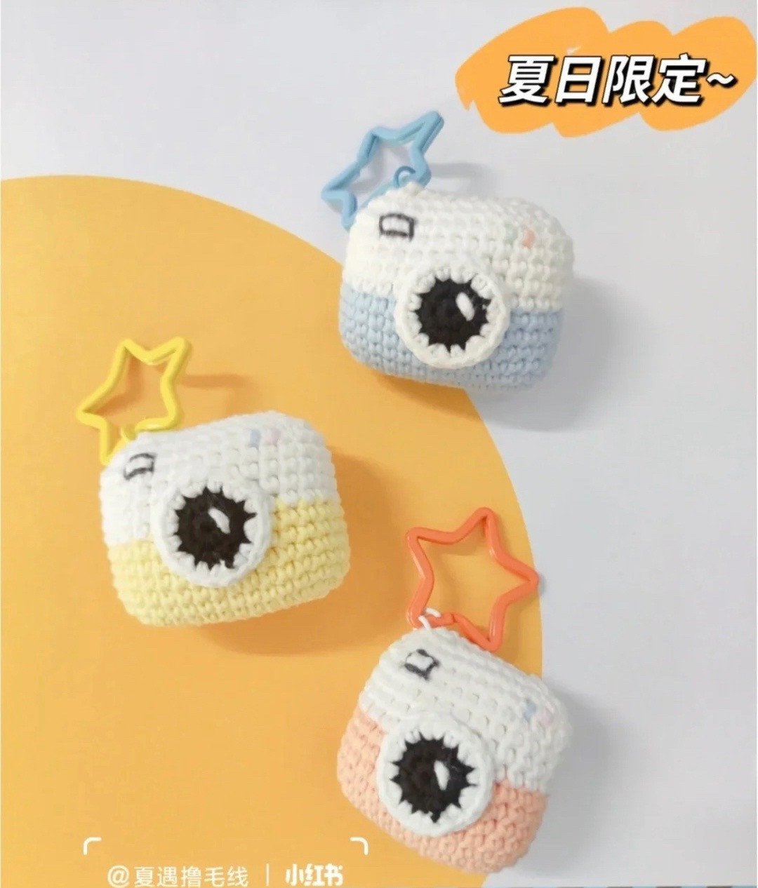 Summer-Themed Crochet Camera Keychain with Star Handle